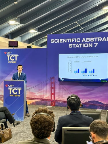 Rick Volleberg MD, Doosup Shin MD, Ruben van der Waerden, Simone Saitta, Jos Thannhauser, Joske van der Zande, Thijs Luttikholt, Pierandrea Cancian, Xiaojin Gu, Leah Heil, Clara Sánchez, Bram van Ginneken, Ivana Išgum, Christian Calistro, Lionel Chong, Adil Ansari, Richard Shlofmitz MD, Evan Shlofmitz DO, Allen Jeremias MD MSc, Fernando Sosa MS MBA, David Cohen MD, Jeffrey Moses MD, Niels van Royen MD, Ziad Ali MD DPhil. “Deep Learning-Derived Plaque Burden for Intracoronary Optical Coherence Tomography: an Intravascular Ultrasound-Based Validation Study.” Journal of the American College of Cardiology. 2025.